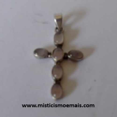 Crucifixo em para de lei (925) e Pedra Quartzo Rosa